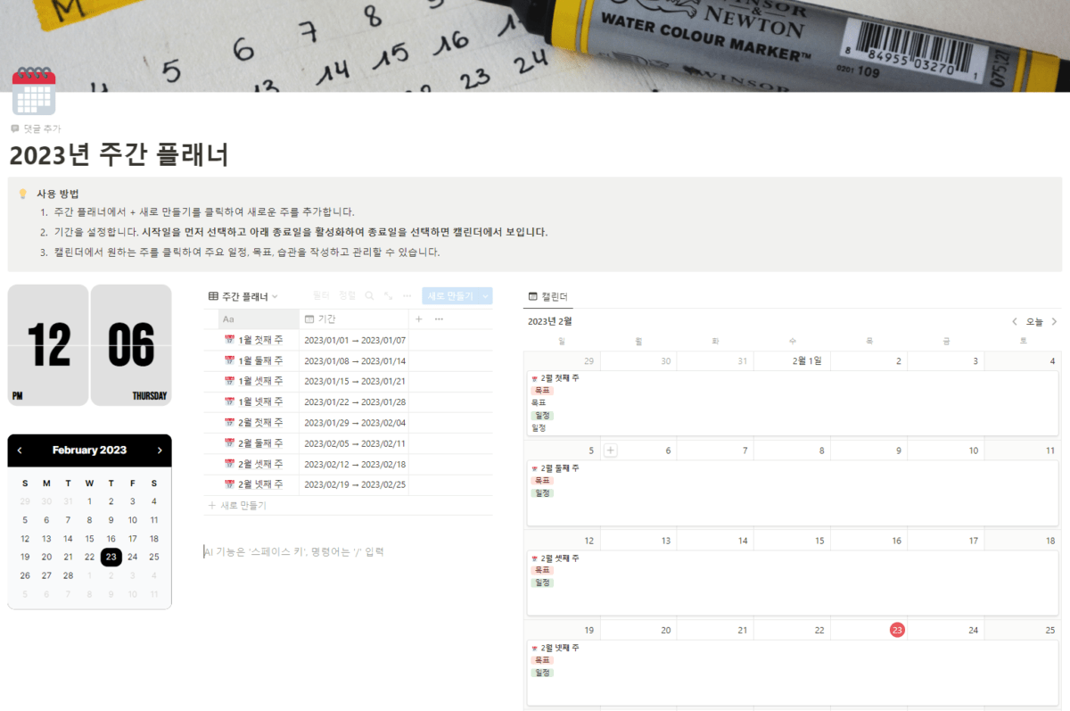 노션 주간 플래너