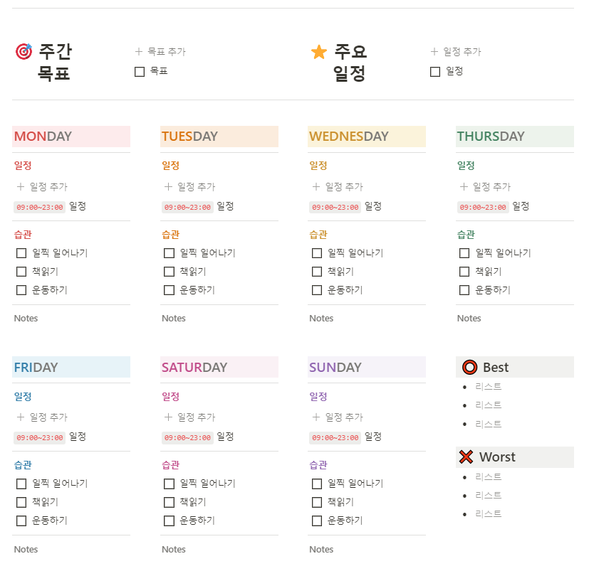노션 주간 플래너, 노션 위클리 플래너