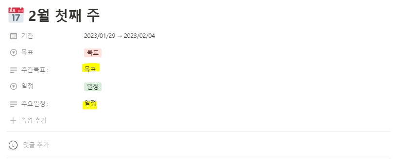 노션 주간 플래너, 노션 위클리 플래너
