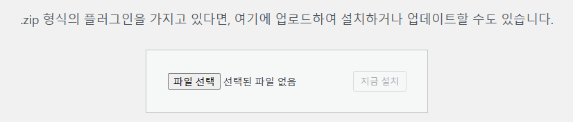 - 파일을 받아 플러그인을 설치하는 경우에는 [플러그인 업로드]를 클릭합니다.