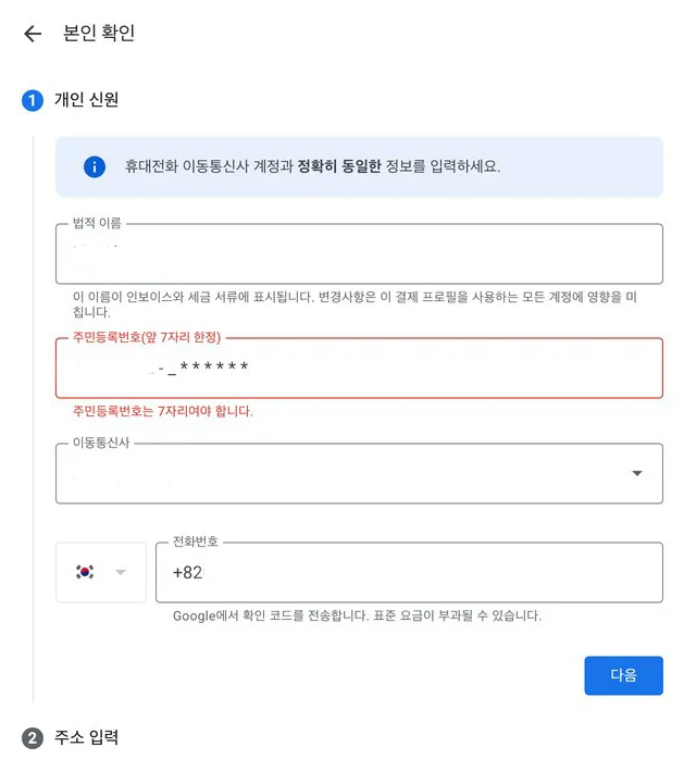 - 이름, 주소 모두 한글로 작성해도 됩니다.