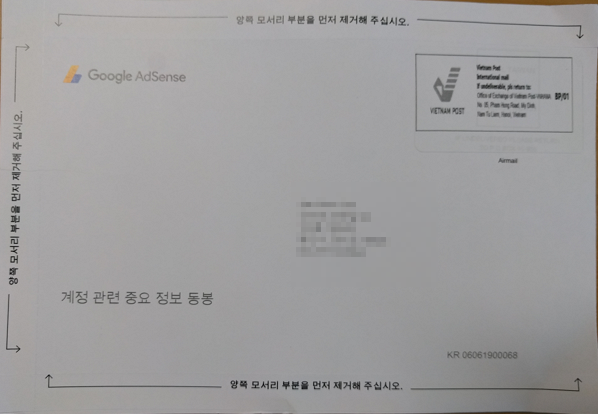 - 애드센스 우편은 일반 우편으로 오므로 우편함을 잘 살펴봐야 합니다.