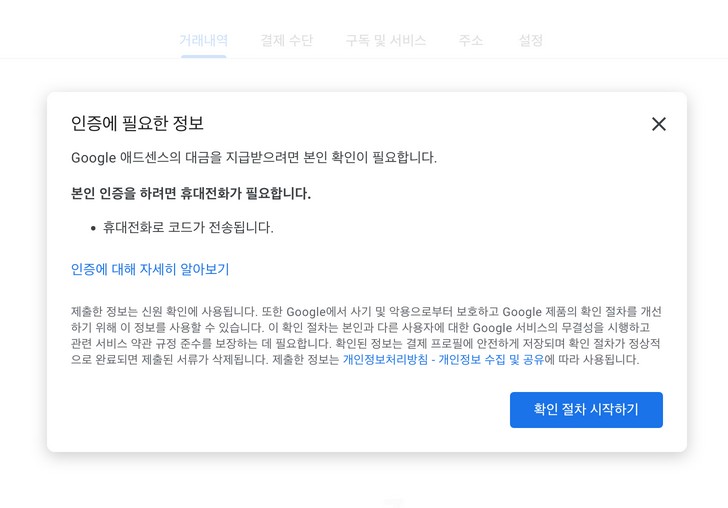 애드센스 본인확인(옵션)
