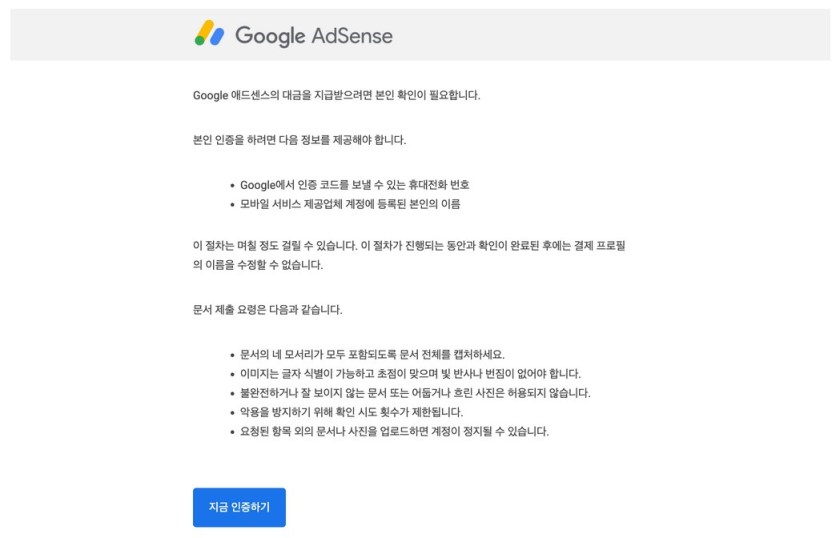 • 애드센스 우편은 일반 우편으로 오므로 우편함을 잘 살펴봐야 합니다.