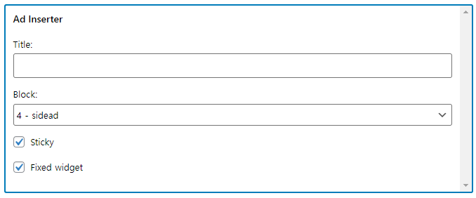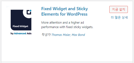 - 이 플러그인으로 사이드바 광고를 고정하려면 Ad insertetd와 FixedWidget 플러그인이 모두 설치되어 있어야합니다.