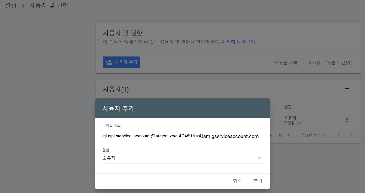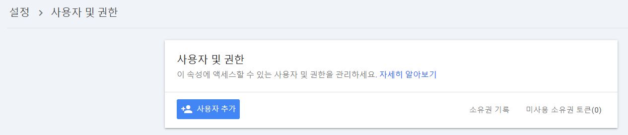 - 구글 서치 콘솔 로그인 -> 설정 -> 사용자 및 권한