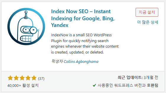 - 마이크로소프트에서 워드프레스용 IndexNow 플러그인을 확인할 수 있는데 아래와 같은 이름으로 등록되어 있습니다.