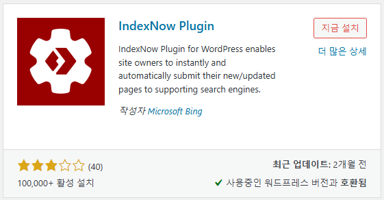 - 마이크로소프트에서 워드프레스용 IndexNow 플러그인을 확인할 수 있는데 아래와 같은 이름으로 등록되어 있습니다.