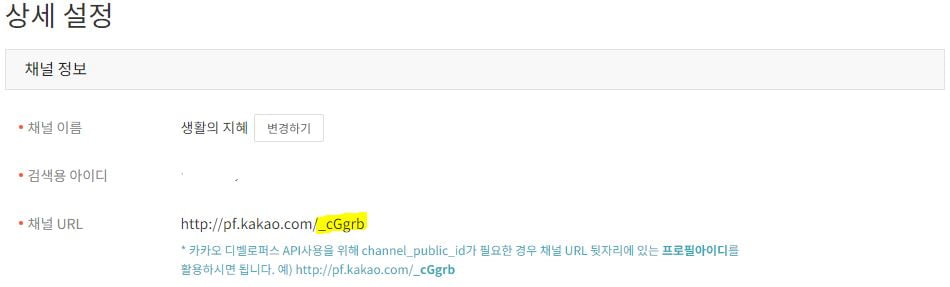 - 노란색으로 표시 된 채널 URL _부터가 아이디 입니다.