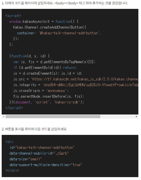 워드프레스 카카오톡 채널 추가 버튼 삽입 방법