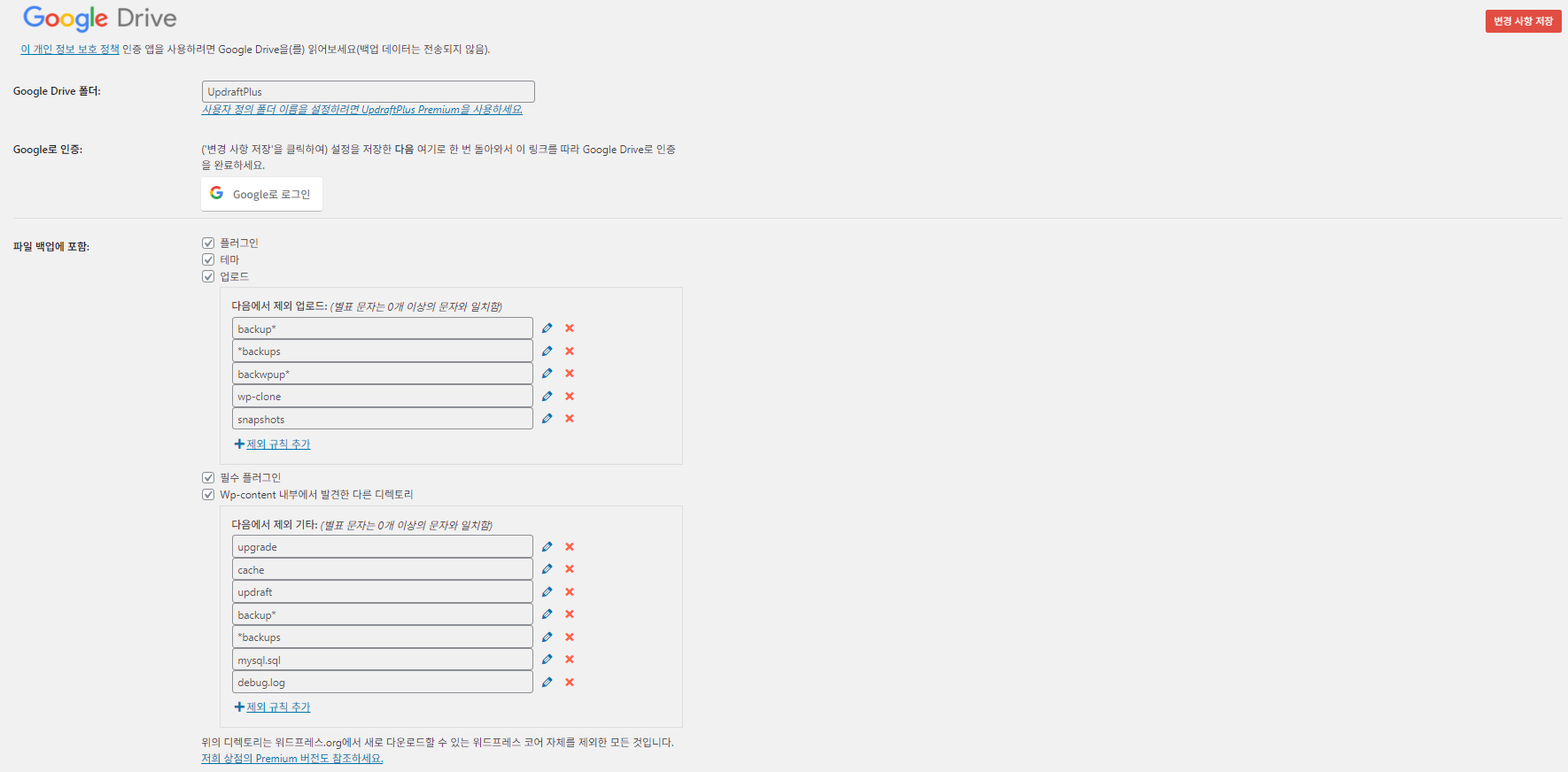 - 구글에 로그인하고 [변경 사항 저장] 클릭