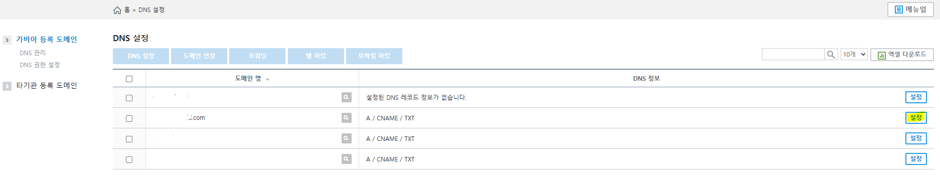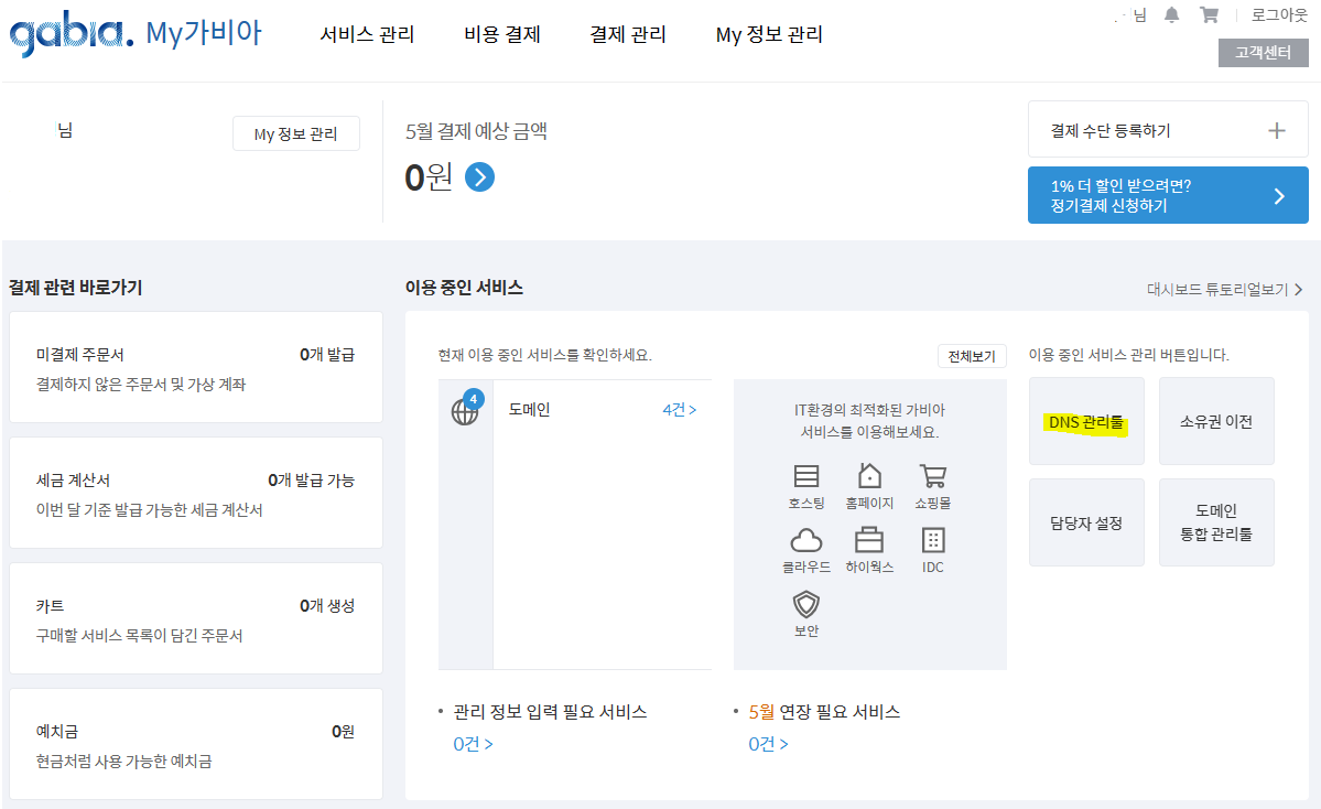 가비아 도메인 DNS 설정