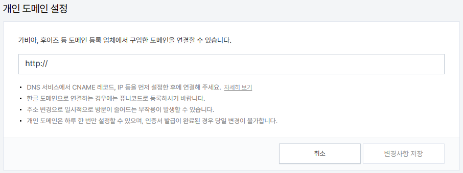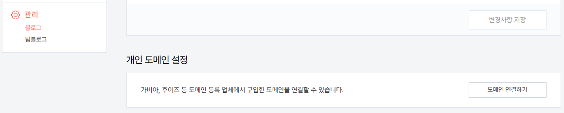 티스토리 로그인 -> 관리 -> 블로그 -> 개인 도메인 설정