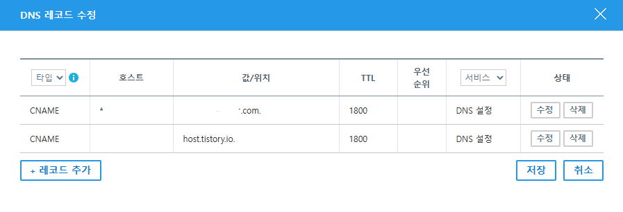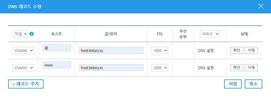 [레코드​ 수정]을 클릭하여 위와 같은 내용을 추가해줍니다.