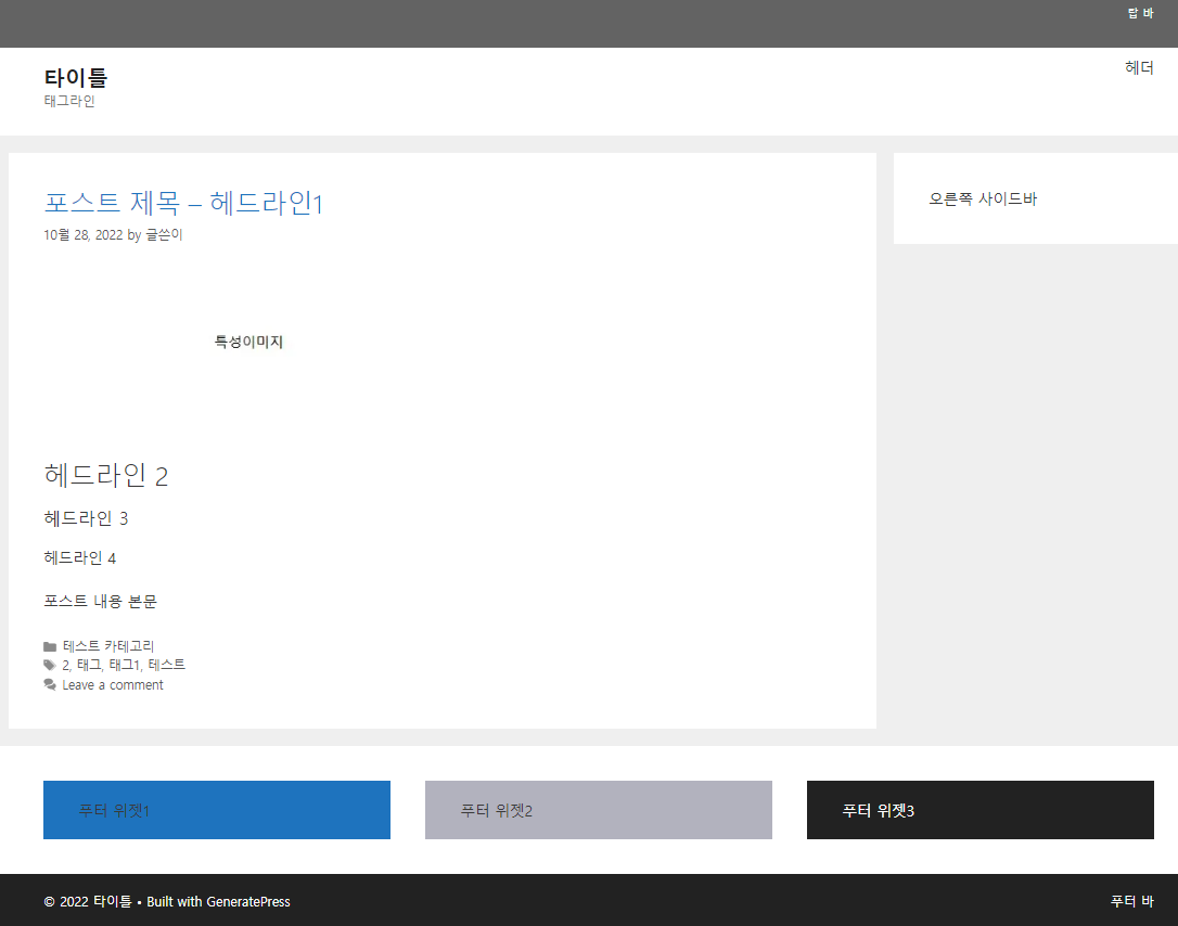 현재 저의 블로그는 GeneratePress 무료 테마로만 이루어져 있습니다.