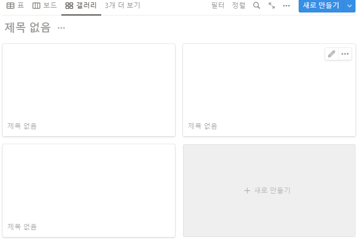 - 새로 만들기 버튼 : 버튼을 클릭하면 바로 새 페이지가 생성됩니다.